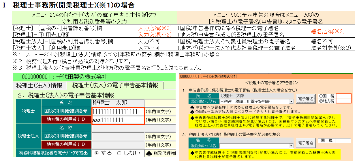 税理士事務所の場合の利用者識別番号等の入力と電子署名の関係はこちら