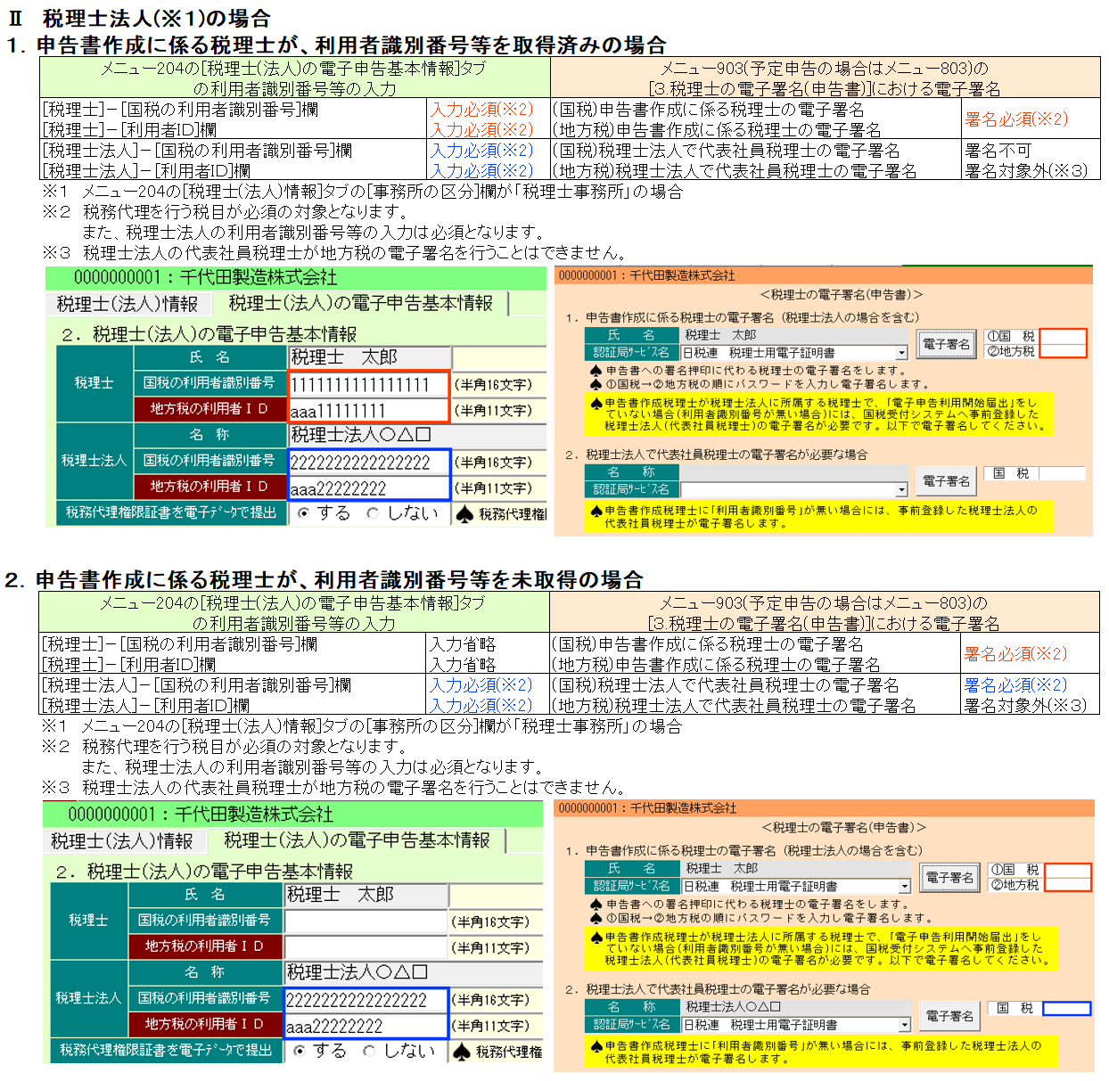 税理士法人の場合の利用者識別番号等の入力と電子署名の関係はこちら