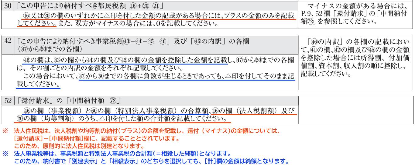 東京都主税局の第12号の2様式の記載要領では、各割のマイナスは表示せず、