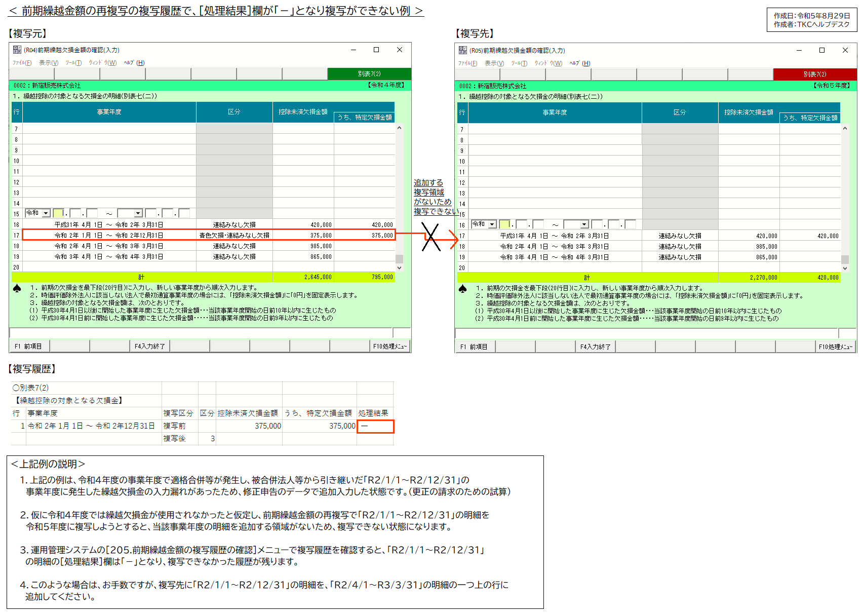 ※2 前期繰越金額の再複写の複写対象だが、複写領域がなく複写できなかった